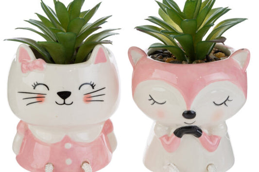 PIANTINA ANIMALI PORCELLANA 2 ASS.8,5×8,5xh.14CM ROSA C/SHOPPER 13694